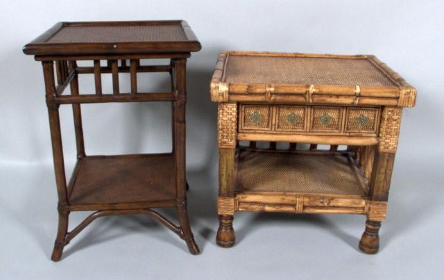 Sold(2) BAMBOO SCANDINAVIAN MODERN DUX SIDE TABLESPair of Scandinavian bamboo bedside tables for DUX, Sweden c. 1960. Dimensions: H 21" x W 20.5" x D 17.75" Condition: One has some fading to the finish and minor wear consistent with age and use. T006See Sold Price