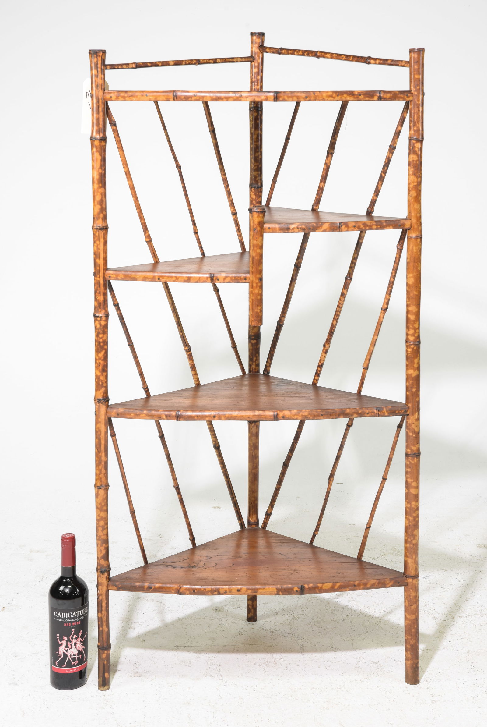 Restored Tiger Bamboo Four-Tier Shelf Etagere with Top Arch