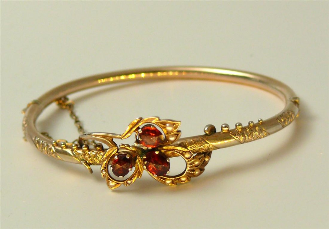 Vintage Victorian Revival 13-14K Yellow Gold Garnet Seed Pearl Bangle BraceletMynt Auctions4.4(834)$1004 days Left