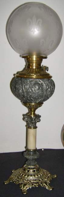 A LARGE ANTIQUE BRONZE AND ONYX LAMP. 68 cm high.