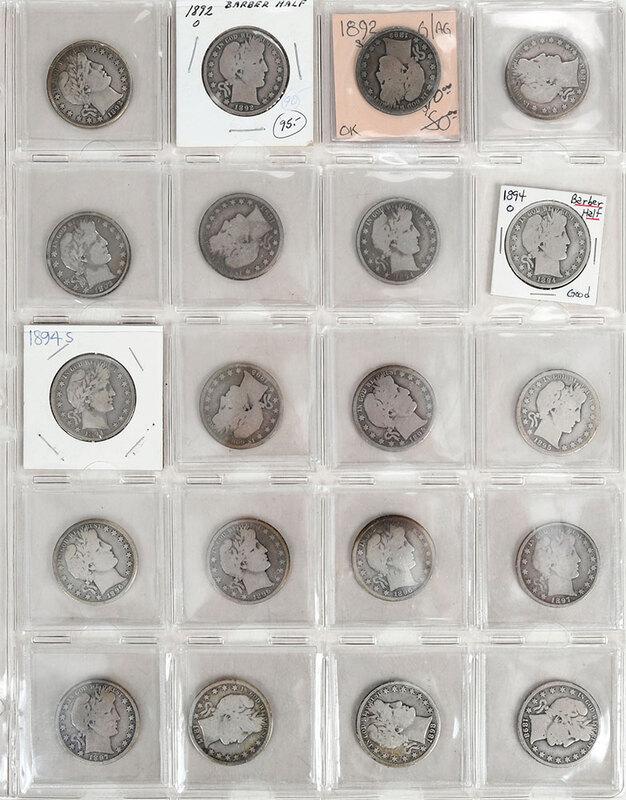 [14 Coins] 1854-1937 U.S. Coin Lot 1C,3C,5C,&10CMar 28, 2026[11 Coins] 1858-1959 U.S. Coin Lot 1C-50CMar 27, 2026[11 Coins] 1881-1963 U.S. Coin Lot 1C-$1Mar 26, 2026Lot of 10 US Type Coins with 1912 Barber Half Dollar Included4 days Left13 Coins, 1902, 1906-O, 1907, 1911, 1912-D, 1941, 1944, 1947, 1964 (5)Mar 28, 2026Seated Liberty And Barber Dimes Quarters Half Dollars3 days Left75 Coins, Mixed Date Quarters - Barber, Standing Liberty & Washington, Various ConditionsMar 28, 2026Silver Barber Dime Set Lot of Twenty One Dimes 21 Coins F58Mar 25, 2026Grouping of United States Silver Dimes3 days Left11 Coins, 4 1892 Columbian Halves and 7 1893 Columbian HalvesMar 28, 2026A Lot of US, FR, and AT Silver and Clad Coins, 1901-1991Apr 16, 2026Grouping of Various Graded United States Silver Half Dollar Coins3 days LeftGrouping of Early American Coins3 days LeftGrouping of Highly Graded United States Coins3 days Left(12) Random Date/Grade Franklin Half DollarsMar 31, 20261892 - 1943 US 90%-Silver Dimes (7)2 days Left