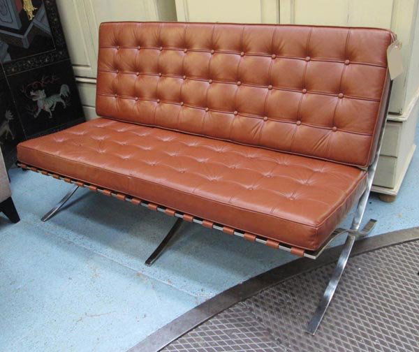 Curved Chesterfield tufted brown leather kidney bean couch / sofa 35"H x 89"WRipley Auctions4.5(195)$2002 days Left