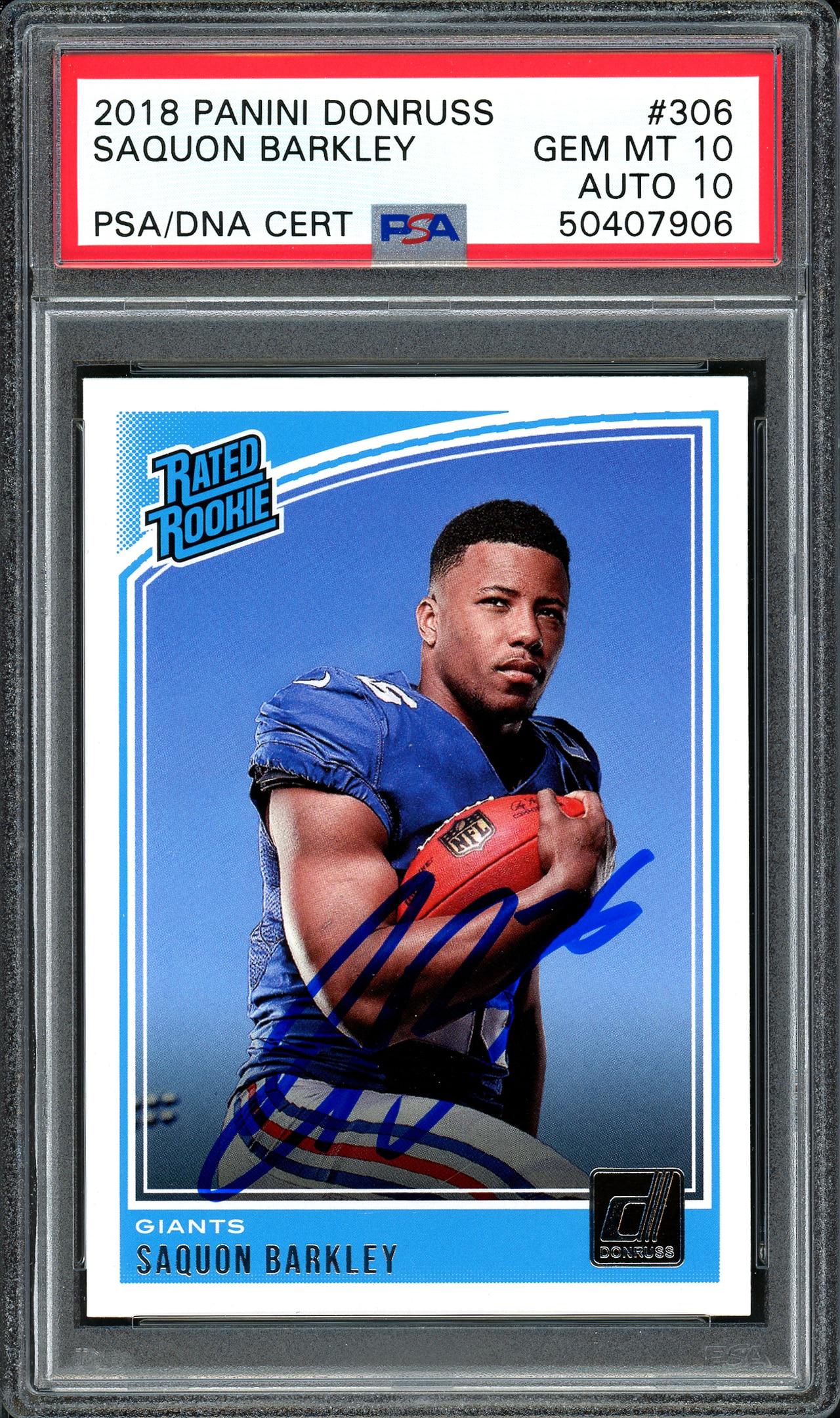 Sold2018 DONRUSS RATED ROOKIE SAQUON BARKLEY2018 DONRUSS RATED ROOKIE SAQUON BARKLEY GEM MINT 10 GIANTSSee Sold Price