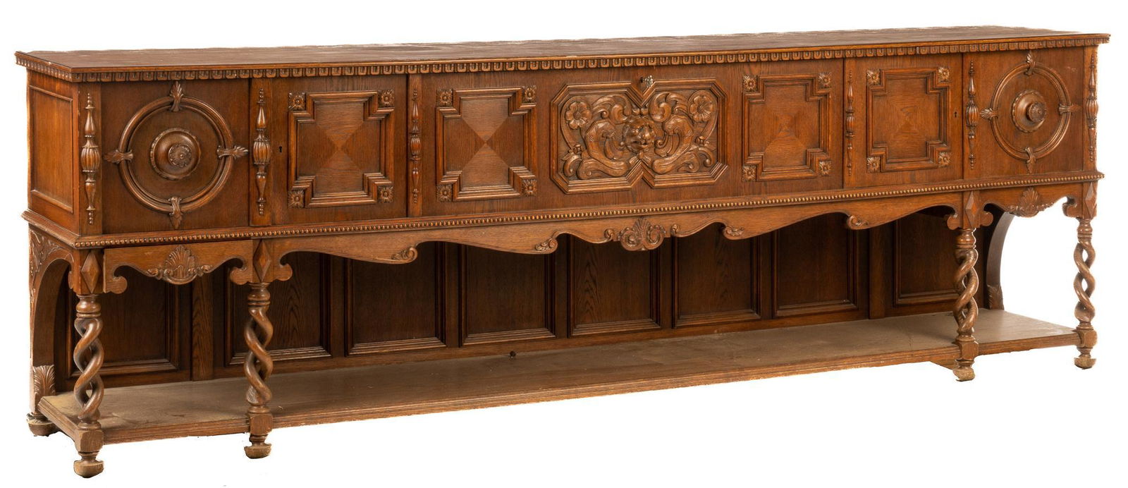 A FOUR DOOR CERUSED OAK SIDEBOARD HAVING SUBTLE PATCHWORK DESIGN AND FOUR INTERIOR DRAWERS C 1945.Kamelot Auctions4.4(346)$1,200(3 bids)22 hrs Left