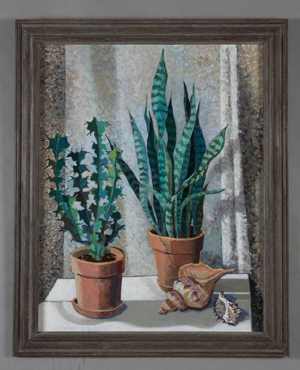 Jacques Bouyssou (FRENCH, 1926 - 1997) oil painting on canvas depicting a French canal street scene.Jacques Bouyssou (FRENCH, 1926 - 1997) oil painting on canvas depicting a French canal street scene. Signed to lower left. Verso of canvas with title "PARIS DEL GRANDS AUGUSTINS". Mounted in a gold pa