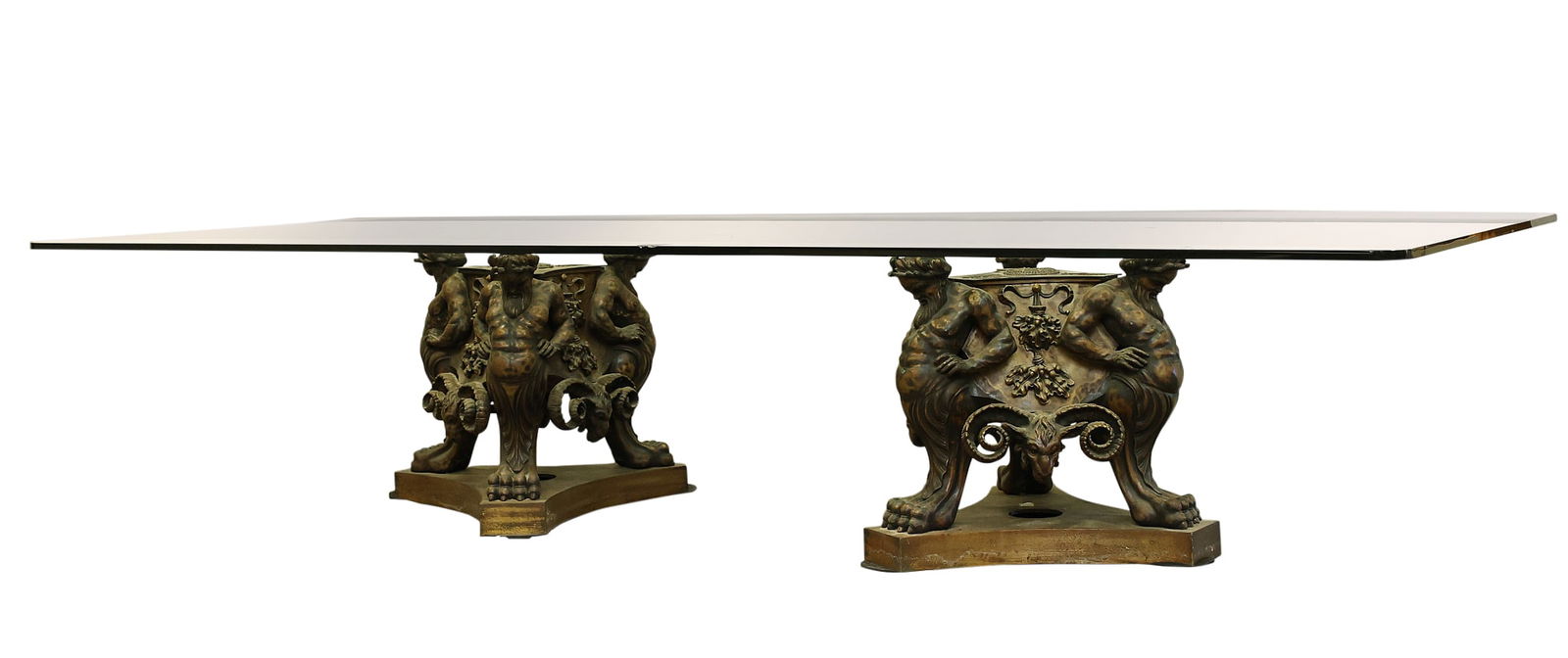 AN EBONIZED WOOD AND GILTWOOD DOUBLE PEDESTAL DINING ROOM TABLE IN THE MANNER OF JAMES MONT CKamelot Auctions4.4(346)$1,2002 days Left