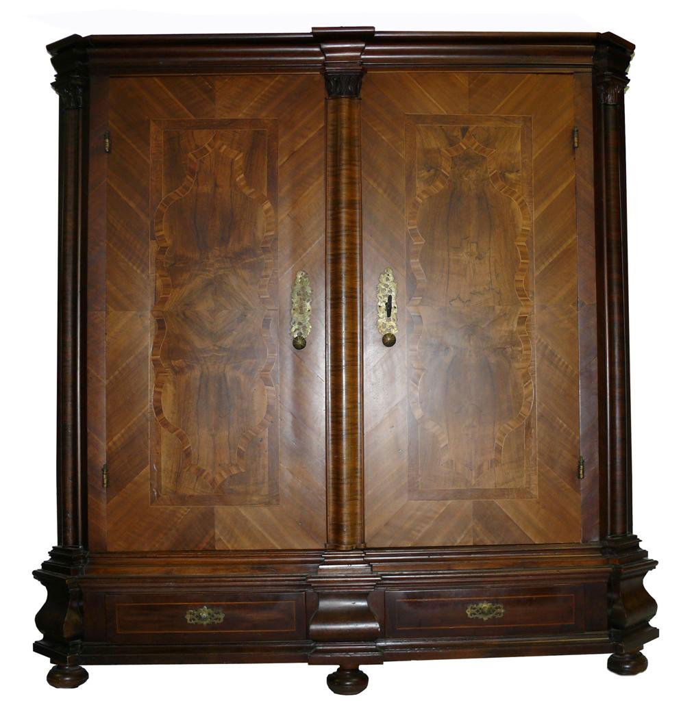 An antique German baroque walnut veneer 'Danziger Schrank' decorated two doors wardrobeOstantix Auctions4.4(13)€800426 Lots Away