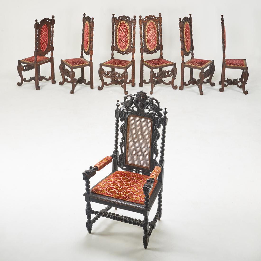 A lot of six antique decorated carved oak chairsFeb 24, 2026(8) RENAISSANCE STYLE CARVED & UPHOLSTERED DINING CHAIRS6 days Left(10) PORTUGUESE BAROQUE STYLE CARVED & UPHOLSTERED DINING CHAIRS6 days Left(6) SPANISH STYLE CARVED & PAINTED CORNUCOPIA DINING CHAIRS6 days LeftRenaissance Style Carved Oak Set of Dining Chairs 19th Cent., H 42" W 18" Depth 17" 12 PCS3 days LeftSet (6) French provincial style dining chairs3 days Left(4) Austrian ebonized side chairsFeb 27, 2026Rare Set of Six Anglo-Dutch Baroque Carved Walnut Side ChairsFeb 26, 2026Set of Twelve Neoclassical Style Ebonized Dining Chairs2 days LeftSet (6) Victorian rosewood dining chairs2 days LeftSet of Four French Henri II Style Side Chairs, 19th c., H.- 38 in., W.- 17 in., D.- 16 in. (4 Pcs.)Feb 27, 2026Six Maderas De Santa Barbara Carved Dining ChairsFeb 27, 2026Vintage Renaissance Dining Chairs Set Carved Oak 1880 Hunting Style7 days LeftSet of Six George III Style Mahogany Dining ChairsFeb 25, 2026Set (6) Chippendale mahogany dining chairs2 days LeftA set of eight Queen Anne style dining chairs circa 19004 days Left
