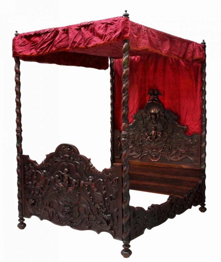 BAROQUE STYLE CARVED CANOPY POSTER BED, 19TH C.