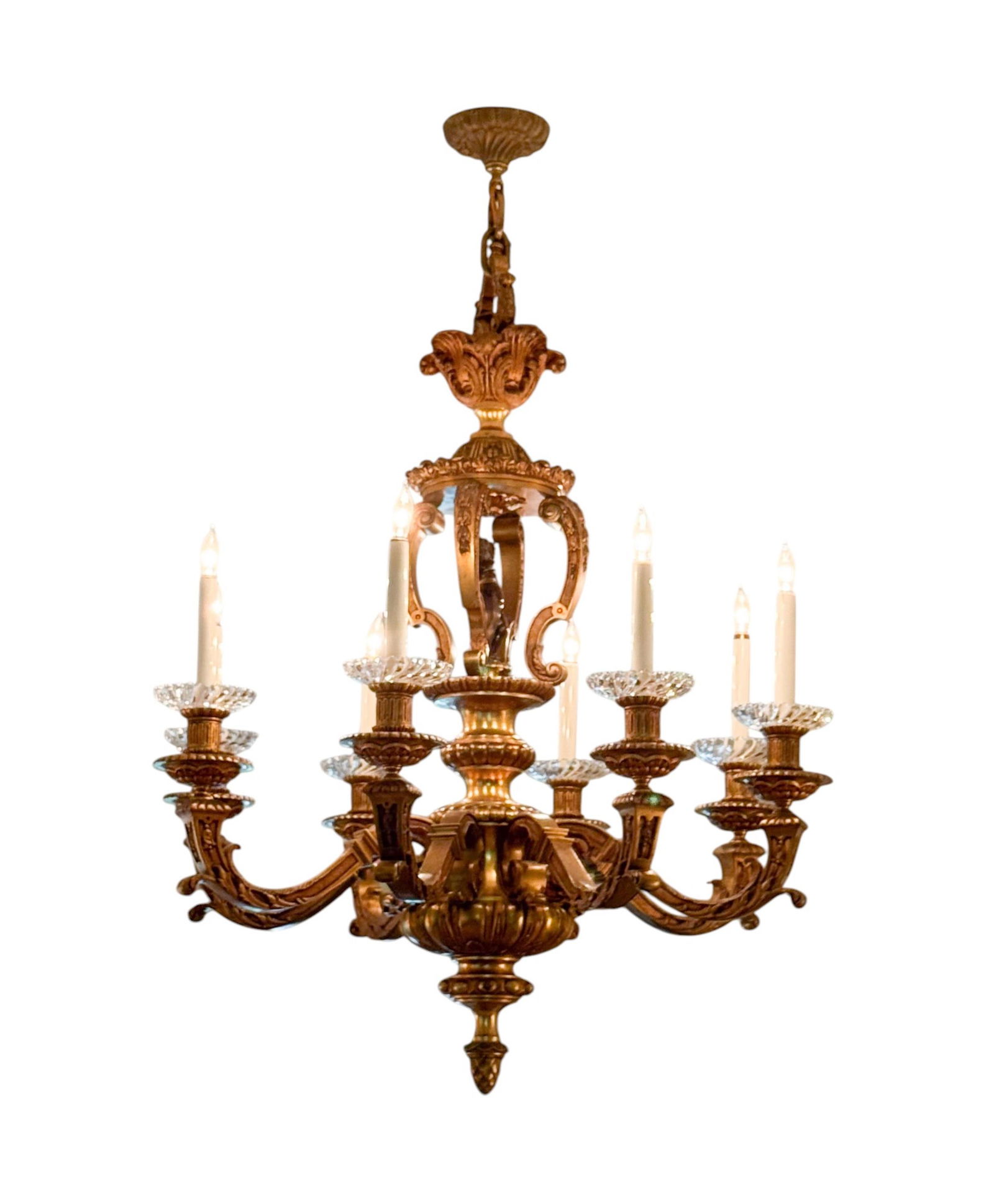 A Louis XIV-style eight-light giltwood chandelier, 20th century,Mar 18, 2026Eight-Light Gilt Bronze Chandelier with Opaline Glass French Louis XIV Style 19th Century6 days LeftDutch Baroque Style 10-Arm Gilt Brass Chandelier2 days LeftAntique Louis XV Bronze Dore Eight-Light Chandelier France 19205 days LeftANTIQUE 19 C FRENCH GILT BRONZE AND CRYSTAL CHANDELIER3 days LeftEarly 20th Century Eight Arm Bronze Chandelier With Italian Crystal Accents2 days LeftFrench Bronze & Crystal Five-Light Chandelier, 20thCMar 07, 2026French Louis XIV Gilt Bronze Figural Cherub Candelabra Chandelier C1880Mar 07, 2026French Louis XV-style Brass and Crystal Six-Arm Chandelier with PatinaA large and imposing antique Louis XVI style rococo gilt and patinated bronze chandelier170 Lots AwayFrench Rococo Gilt and Ebonized Metal 6-Light Foliate Chandelier C1930Mar 07, 2026French Louis XIV Gilt Bronze 24 Light Chandelier, Early 19thCMar 07, 2026Custom Made Neo-Classic English 12 Arm Wood and Iron ChandelierMar 06, 2026Important Large French Gilt-Bronze Twenty-One-Light ChandelierMar 12, 2026Antique Italian 6-arm gilt tole and crystal basket chandelier3 days LeftLouis XVI Style Brass Five-Branch ChandelierMar 26, 2026
