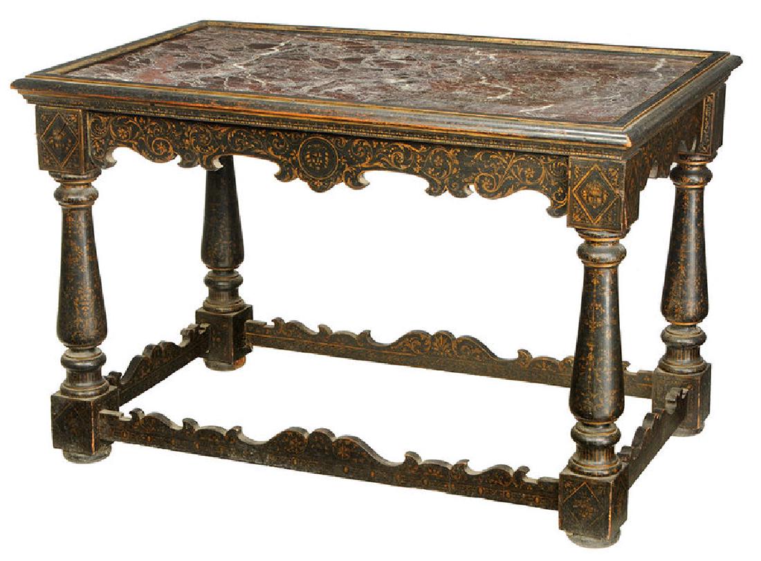 Baroque Style Marble Top Painted Center Table