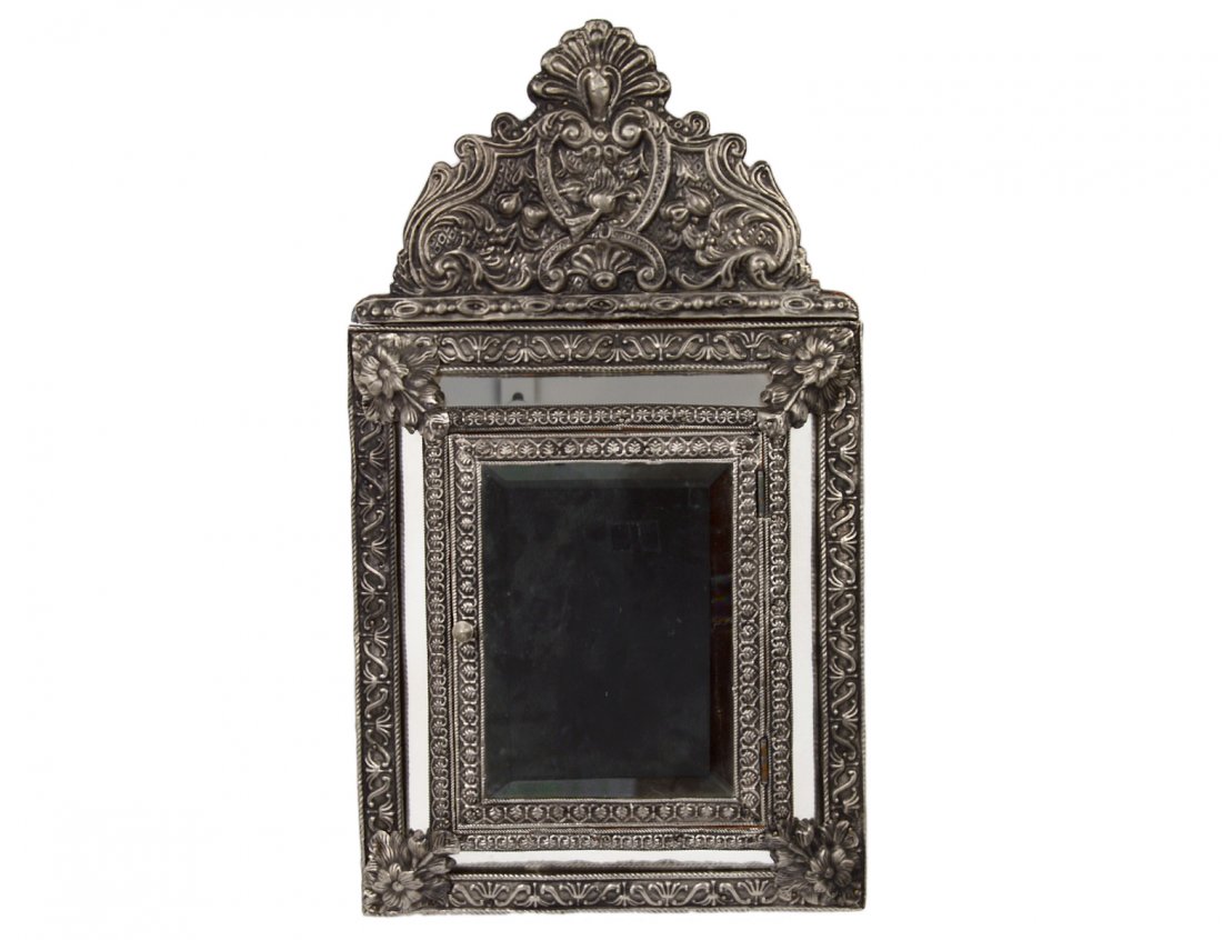 BAROQUE STYLE PEWTER MIRROR/CABINET