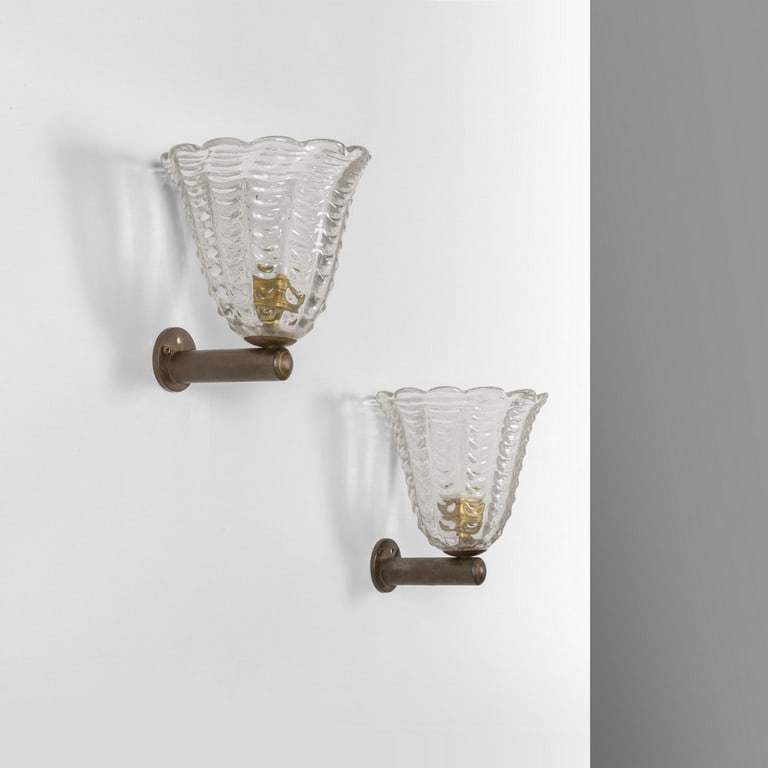 BAROVIER E TOSO, circa 1935. Due lampade da
