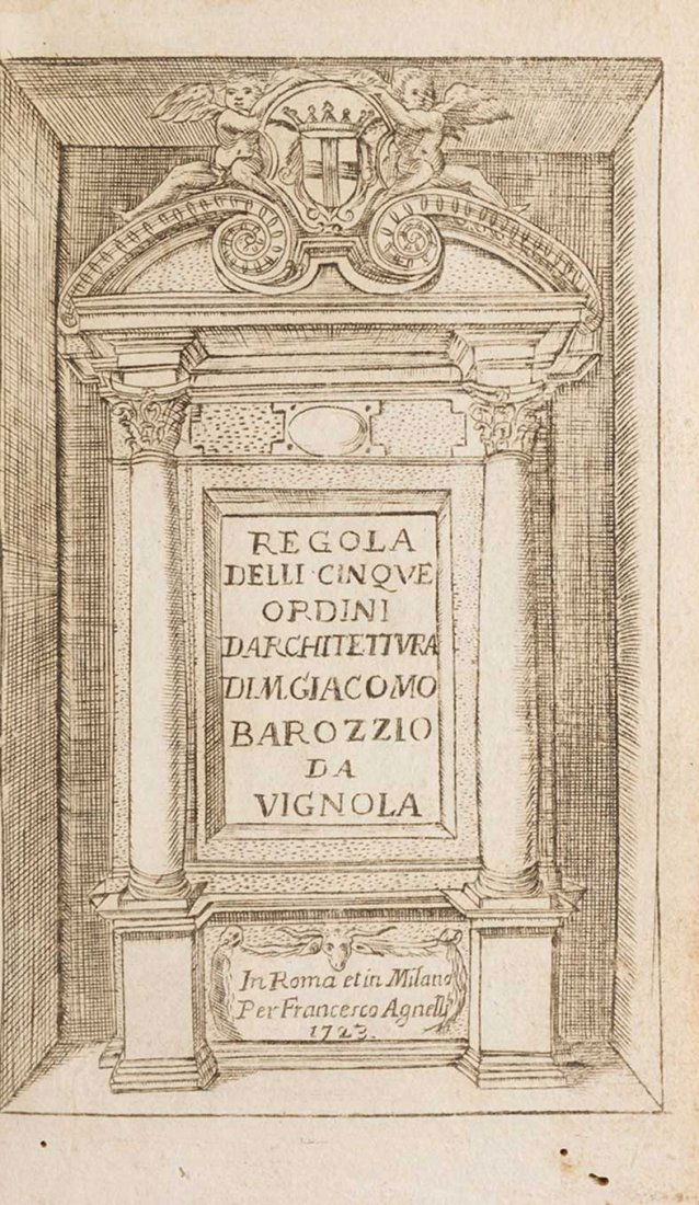 Sold[ARCHITECTURE]. BAROZZI, Giacomo, called Vignola[ARCHITECTURE]. BAROZZI, Giacomo, called Vignola (1507-1573). Regola delli cinque ordini d'architettura. Bologna, Lelio dalla Volpe, 1736.  8vo. Engraved title-page, 35 engraved plates. (Some spoSee Sold Price
