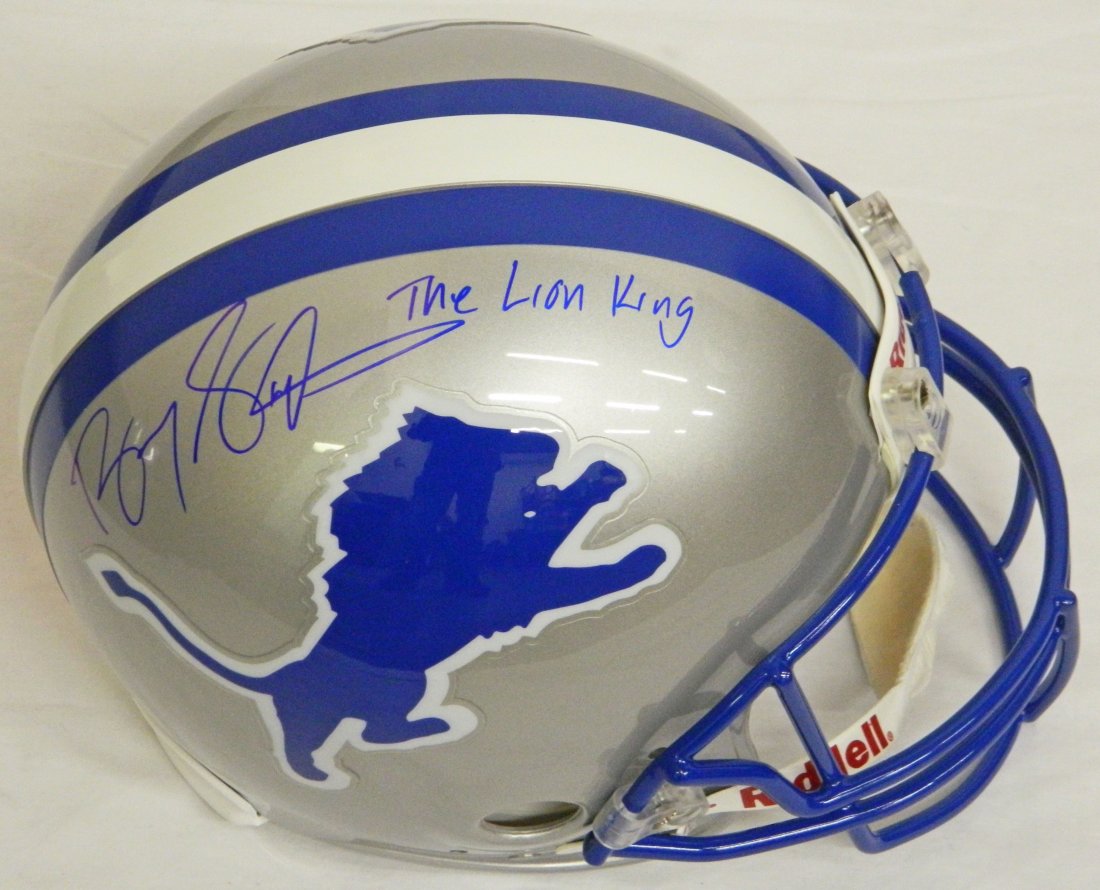 Barry Sanders Signed Lions Riddell Throwback Authentic