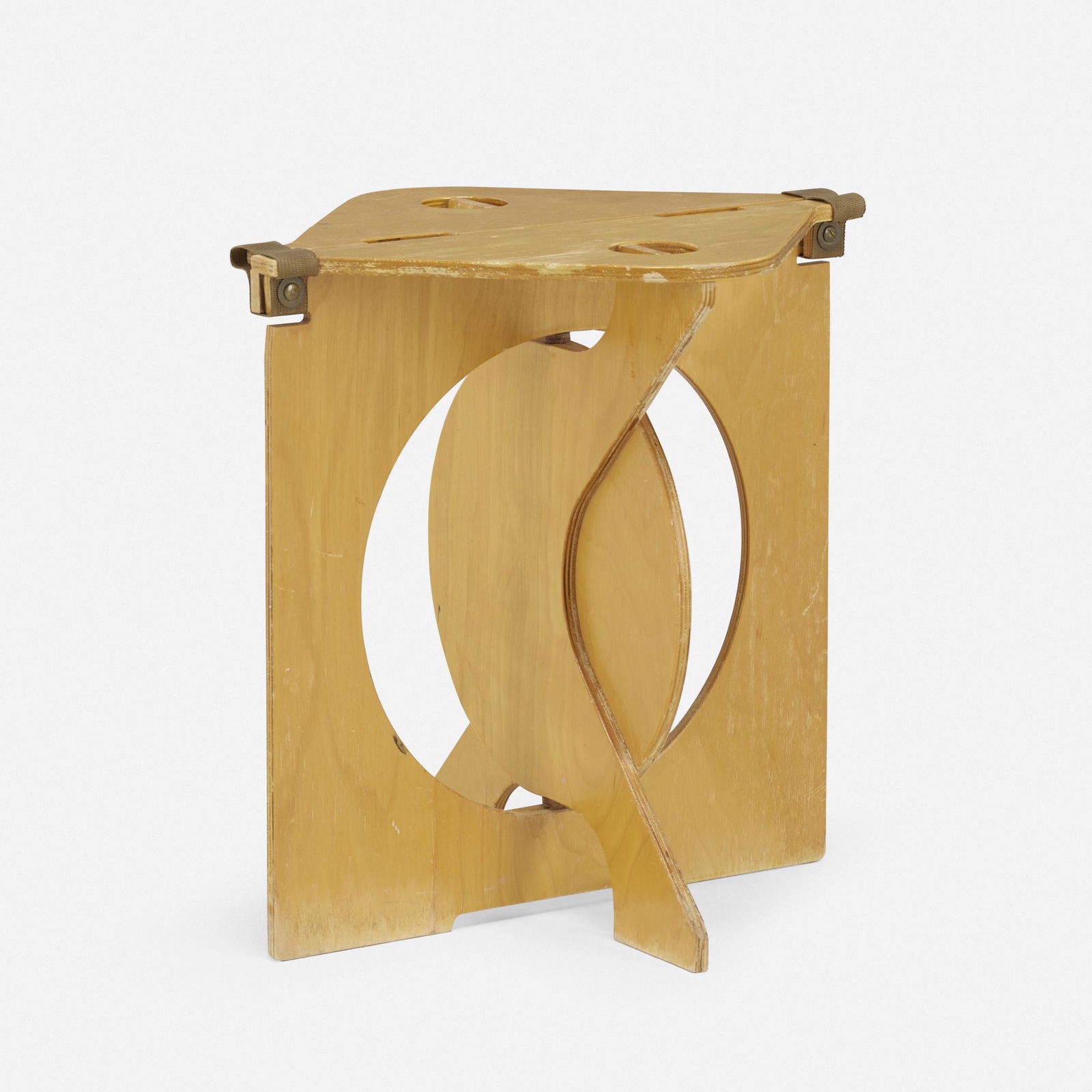 SoldJohn Vesey aluminum and walnut folding stoolJohn Vesey aluminum and walnut folding stool, Circa 1970s, unmarked, 27.5"h x 27"w x 11.75"dSee Sold Price