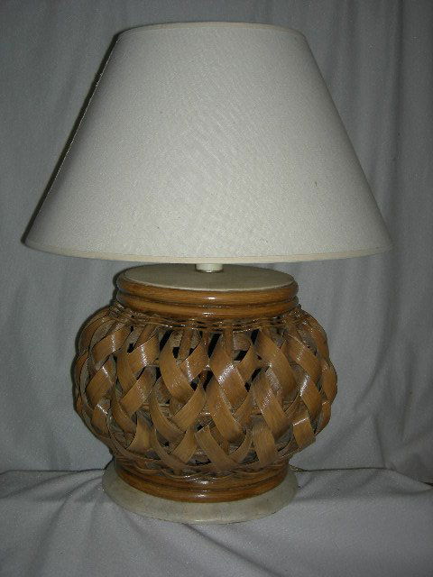 SoldPr Plaster Basket Weave Form Table Lamps. Pleated shades.Pr Plaster Basket Weave Form Table Lamps. Pleated shades. Dimensions: Height: 25.5 inches, Width: 18 inches, Depth: 18 inches. --- US Packing and Shipping charge: In house shipping available. Will beSee Sold Price