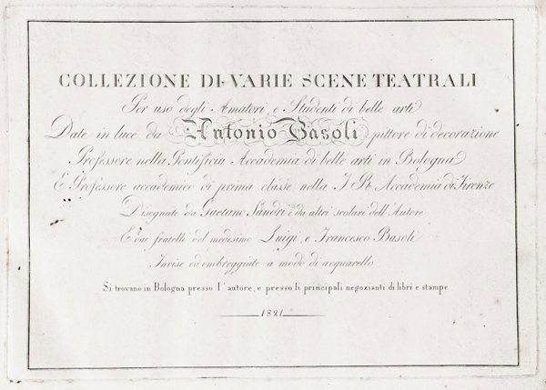 SoldStage design.- Basoli (Antonio), After. 25 plates from: 'Collezione di varie scene teatrali...',Stage design.- Basoli (Antonio), After. 25 plates from: 'Collezione di varie scene teatrali...', sepia aquatint plates by Luigi and Francesco Basoli, each sheet approx. 370 x 480 mm (14 1/2 x 18 7/8 iSee Sold Price