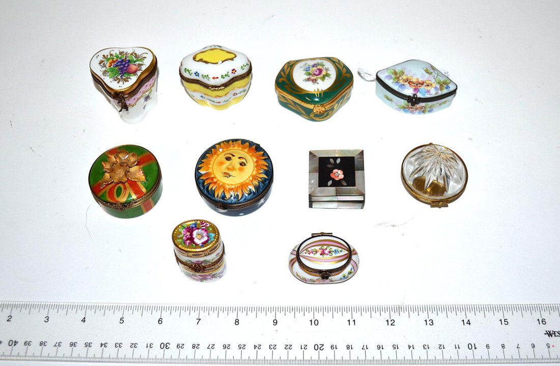 Lot of 4 Trinket Boxes5 days LeftVINTAGE LADIES NECESSAIRES LOT LOCKET BOXES215 Lots AwayOnyx, Porcelain & Enamel Trinket Boxes 4pc LOTFeb 26, 2026Lot 6 19th C Lithographed Tin Christmas BoxesMar 07, 2026Lot of Costume Jewelry incl Cufflinks, Christmas Brooches, Etc2 days LeftA lot of six Chinese Qianjiang variously shaped and decorated porcelain objectsFeb 24, 2026Pan Am Scripto Figural Mouse Cigarette Lighter LOT4 days LeftEstee Lauder Dunhill Ciner Limoges Compact MirrorFeb 26, 2026(12) CHINESE ROSE MEDALLION PARCEL-GILT PORCELAIN TABLE ARTICLESFeb 22, 2026Sterling Silver Enamel Compacts Cigarette Case 10p4 days Left(5) JAPANESE BLACK LACQUER PAINTED TABLE BOXESFeb 21, 2026(6) FABERGE STYLE JEWELED & ENAMELED EGG-FORM BOXES, 4 MUSIC BOXESFeb 22, 2026(12) COLLECTION OF TRINKET / PILL BOXES, VARIED MAKERS, MATERIALS & DESIGNFeb 20, 2026(4) PAINTED TOLE TEA CANISTERS, 2 NOW FASHIONED AS TABLE LAMPSFeb 21, 2026(4) JAPANESE LACQUERED TABLE BOXES, 1 WITH MOP INLAYFeb 20, 2026Limoges Painted Porcelain Trinket Boxes, 13Mar 12, 2026