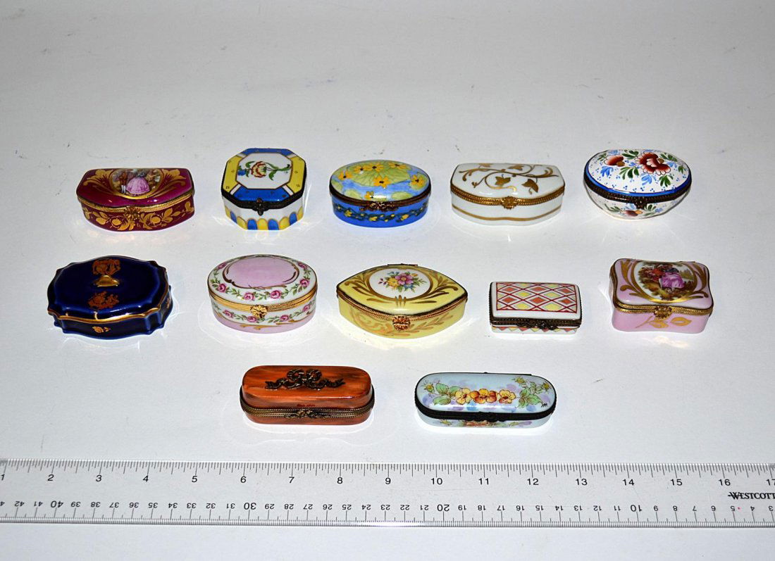 Lot of 4 Trinket Boxes5 days LeftLot 6 19th C Lithographed Tin Christmas BoxesMar 07, 2026Lot of Four French Enameled Table Boxes1 day LeftLot of China - Mason's Ironstone, Rathbone, More.2 hrs LeftLot: 8 Pcs.- Music Boxes, Marquetry Inlay Trays.2 hrs LeftLot of Costume Jewelry incl Cufflinks, Christmas Brooches, Etc2 days LeftLot Asian Ceramic & Porcelain Items - Egg Box, Etc2 hrs LeftLot of Seven Hand Painted Wood & Paper Mache BoxesFeb 16, 2026Estee Lauder Dunhill Ciner Limoges Compact MirrorFeb 26, 2026(12) CHINESE ROSE MEDALLION PARCEL-GILT PORCELAIN TABLE ARTICLESFeb 22, 2026(12) COLLECTION OF TRINKET / PILL BOXES, VARIED MAKERS, MATERIALS & DESIGNFeb 20, 2026(12) COLLECTION OF JEWELED & ENAMELED TRINKET / PILL BOXESFeb 20, 2026Collection of Chinese porcelain including 2 Kangxi saucers (iron red & gold) Kangxi, famille roseFeb 15, 2026(4) JAPANESE LACQUERED TABLE BOXES, 1 WITH MOP INLAYFeb 20, 2026Limoges Painted Porcelain Trinket Boxes, 13Mar 12, 2026Continental Porcelain & Enamel Table Articles, 21Mar 12, 2026