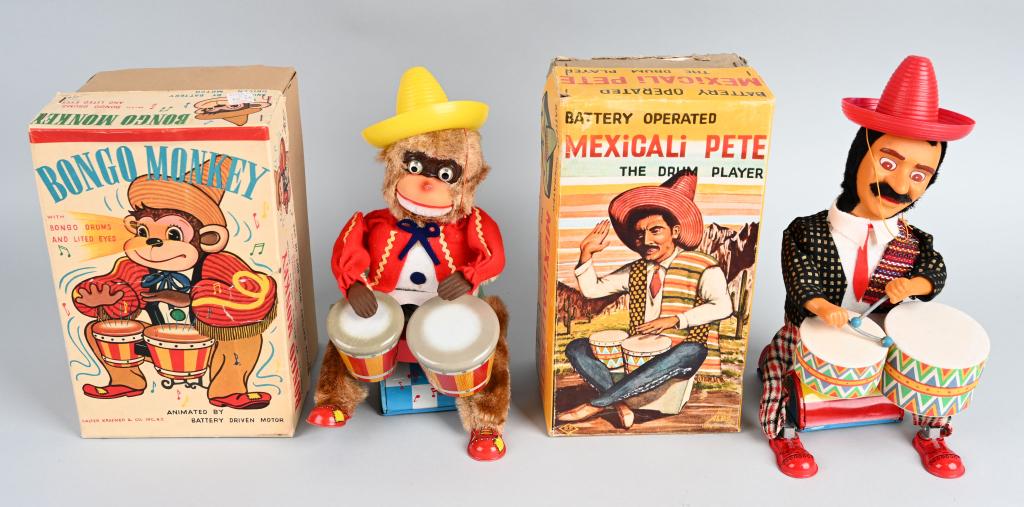 VINTAGE TOY LOTMar 07, 2026Lot of Vintage ToysMar 04, 2026Lot of Assorted Antique ToysLot 2 Boxed Sets Noma Bubble-LitesMar 07, 2026(5) 1990s-00s Mattel Barbie, Kelly & Tommy Wizard of Oz NRFB2 days LeftLINDSTROM SWEEPING KATINKA & MAMMYFeb 27, 2026BOXED MARX GEORGE THE DRUMMER & UNIQUE ART GI JOEFeb 27, 2026CELLULOID JACKIE COOGAN & MONKEY PLAYING GUITARFeb 27, 2026UNIQUE ART BOXED JAZZBO JIMFeb 27, 2026A Group of Cast Iron Mechanical Bank Reproductions including Stump Speaker and Trick Pony Designs6 days LeftVintage Mechanical Wind-up Tin Lithograph Animal Toys (5)Mar 28, 2026Four Older Vintage Wind-Up Tin Toy Panda Drummers in Original Boxes - Two Without Keys6 days LeftCast Iron Coin Banks, Pigs & Monkey (3)6 days LeftVarious Collectible Toys, Etc. - Skipping Monkey, Disney, Hallmark, Etc.6 days LeftBOXED MARX PLUTO THE DRUM MAJORFeb 27, 2026Vintage Mechanical Toys and Tin Litho Tank Bank (3)Mar 07, 2026