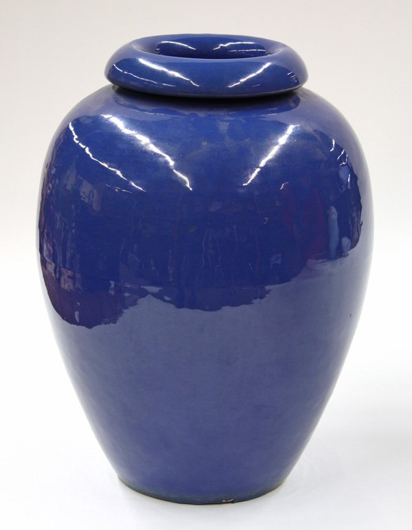 Large Gladding McBean 29" Oil JarLarge Gladding McBean dark cobalt blue drip glaze over turquoise. c1920s. Unsigned. 29"h x 16"d. Larger piece are shipped via Steve Auger Shipping. He travels coast to coast every month delivering antSee Sold Price