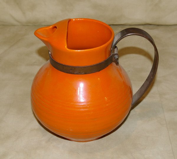 Bauer Pottery Metal Handled Pitcher Orange