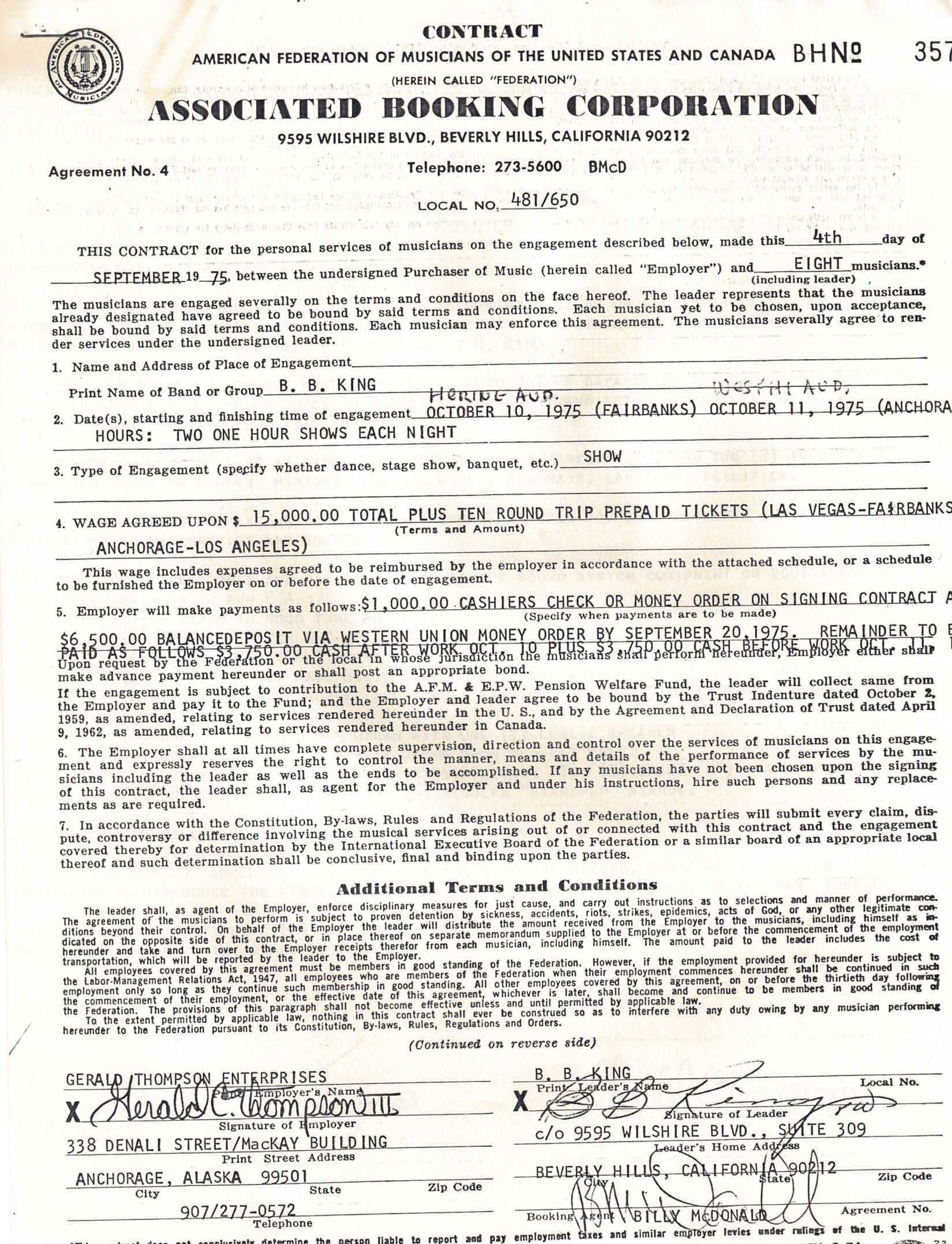 B.B. King Contracts & Earning Statements