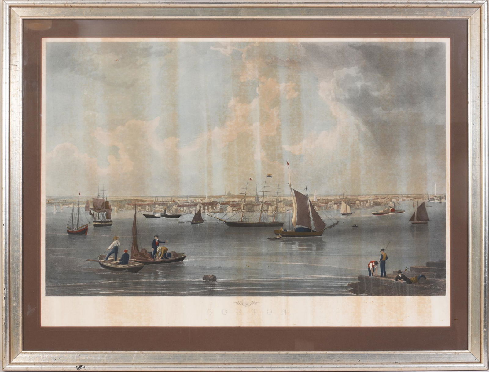 B.E. Smith Large Folio Hand-colored Boston Harbor Engraving.