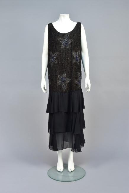 BEADED BLACK SILK GOWN, 1930s