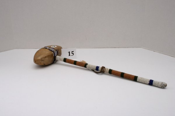 NATIVE AMERICAN CEREMONIAL ARTICLES, LOT OF THREEMar 04, 2026Plains Grooved War Club with Beaded Handle 22".5 days LeftRawhide Wrapped Plains Stone War Club 16".5 days Left17" Buffalo Dance Rattle.5 days LeftBeaded 10 1/2" Tomahawk Drop.5 days LeftPLAINS QUIRT WITH BEADED WRIST STRAPMar 18, 2026Stone war club, pre-1900Mar 07, 2026Plains Beaded QuirtMar 12, 2026Misc. Bone Beads and Tools, Mandan, North Dakota6 days LeftEarly Southern Plains "head knocker" club, pre-1900Mar 07, 2026Sioux Tomahawk Pipe 18" with Beaded Drop 1893 Indian Head Penny and bells, Bone mouth piece.5 days Left7" Beaded Strike-a-lite Bag.5 days LeftSouthern plains arrow with stone tip, sinew, paint, pre-1892Mar 07, 2026Ram Effigy Plains War Club with Horse Hair Drop 18".5 days Left