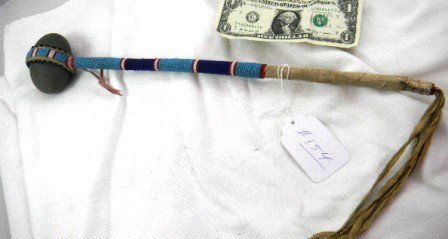 Plains Grooved War Club with Beaded Handle 22".Feb 28, 2026Beaded 10 1/2" Tomahawk Drop.Feb 28, 2026Buffalo Face Tomahawk Pipe with beaded drop and 24" tacked handle/stem.Feb 28, 2026Sioux Tomahawk Pipe 18" with Beaded Drop 1893 Indian Head Penny and bells, Bone mouth piece.Feb 28, 2026PLAINS QUIRT WITH BEADED WRIST STRAPMar 18, 2026Crow Beaded & Tacked 11 1/2" Sheath & 8" Antler Handled Knife.Feb 28, 202610 1/4" Leather Beaded Sheath with 111/4" Hand Made Vintage Knife.Feb 28, 2026Sioux beaded knife and knife sheath, pre 1900Mar 07, 2026Stone war club, pre-1900Mar 07, 20267" Beaded Strike-a-lite Bag.Feb 28, 2026Large Native American Trade Tomahawk w/ Beaded and Leather Fringe Drop Indian War Period c.1880-1905Feb 28, 2026Native American Trade Peace Pipe Tomahawk with Gun Barrel Bowl and Beaded FringeFeb 28, 202624" Spontoon Pipe Tomahawk Bat Design with Beaded Drop with bells and silver cross. Tacked handle.Feb 28, 2026AFRICAN YORUBA SWORD AND KNIFE W/ BEADED CASE3 days LeftAntique Indonesian Tribal MANDAU Sword ~ Used by Borneo DAYAK Tribe Headhunters ~ Fine Carved BoneMar 14, 2026Crow Leather Beaded Knife Sheath with 19th Century Bird Effigy Knife 9".Feb 28, 2026