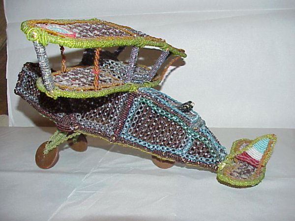 BEADWORK WWI MODEL FIGHTER PLANE, OVERALL L.16",