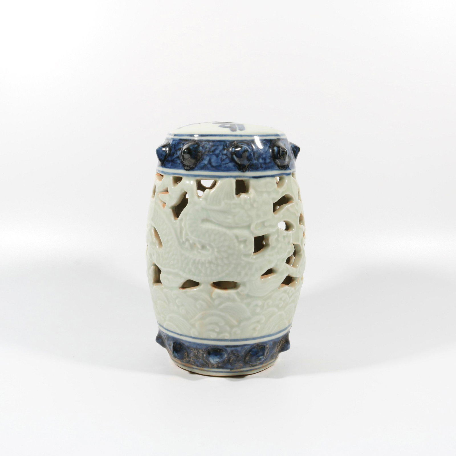 Bean green blue and white openwork dragon pattern pier
