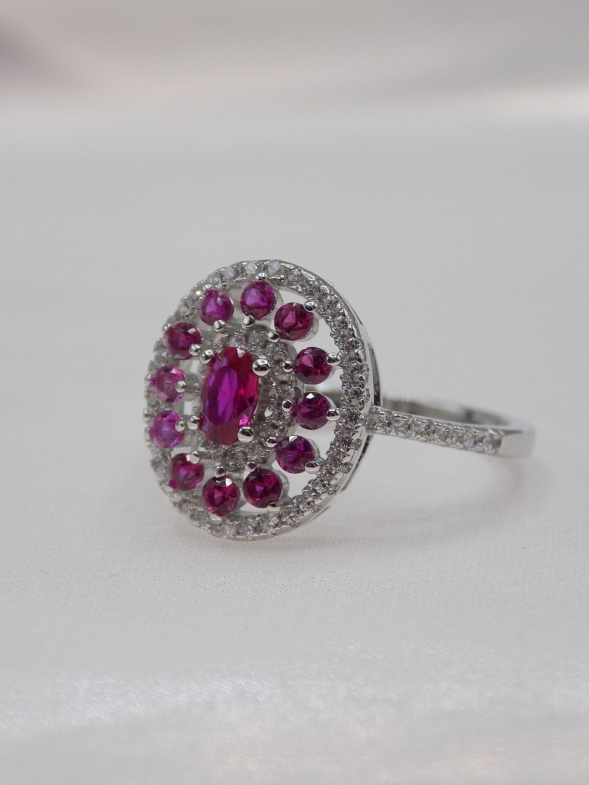 Beautiful 2 cwt ruby and topaz sterling silver ring