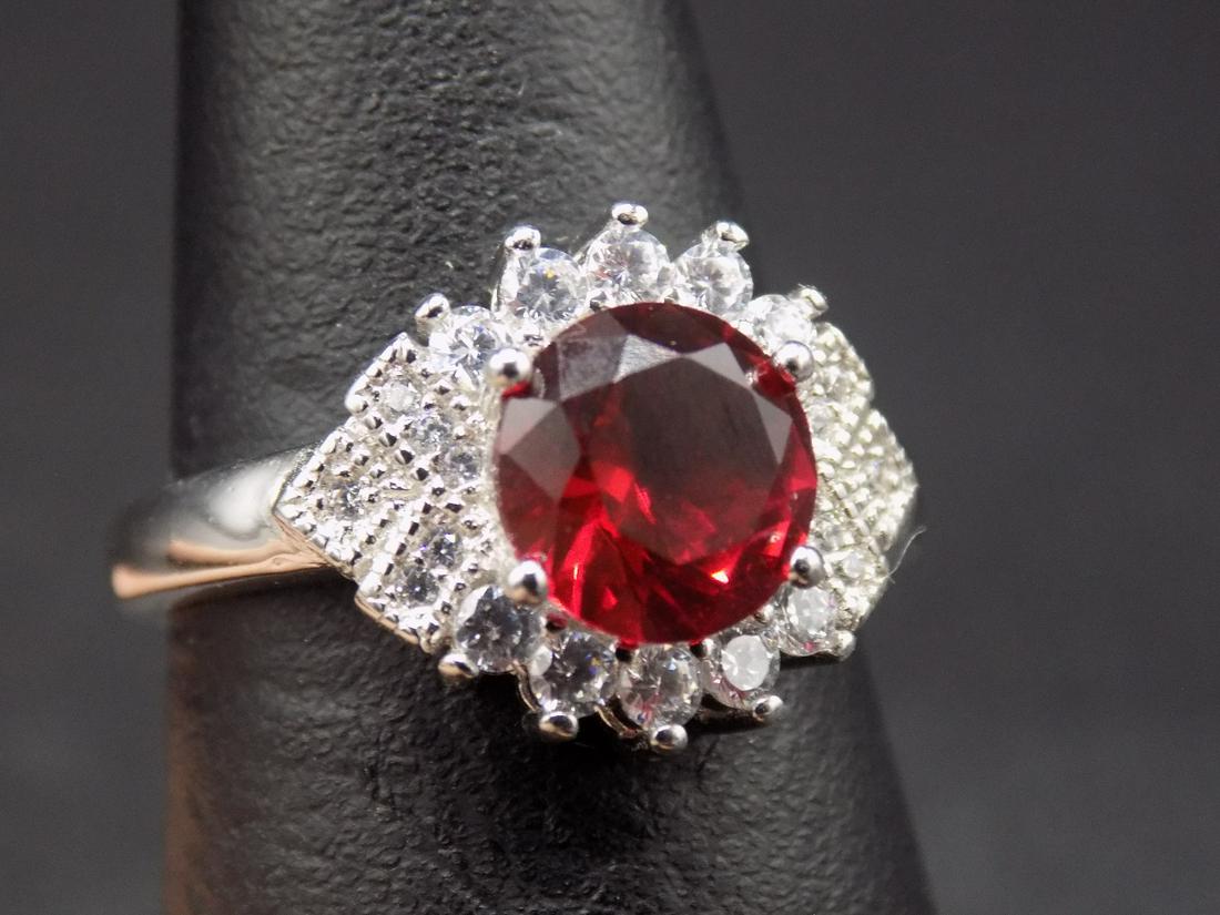 Beautiful 3 cwt. ruby and topaz .925 sterling ring
