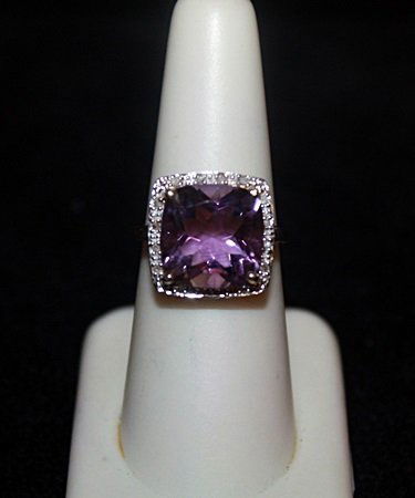 14k Gold 7.00ct Amethyst 1.00ct Diamond Ring