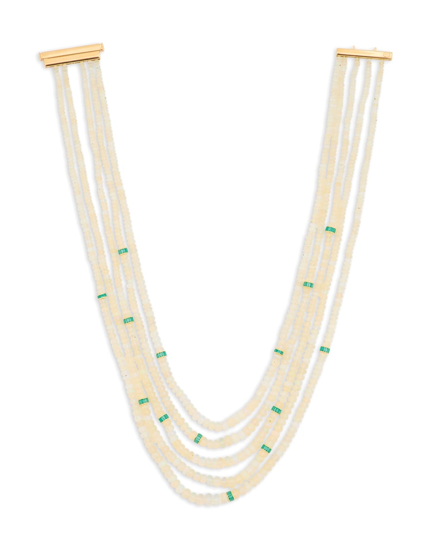 Beautiful Five-Strand Opal and Emerald Necklace