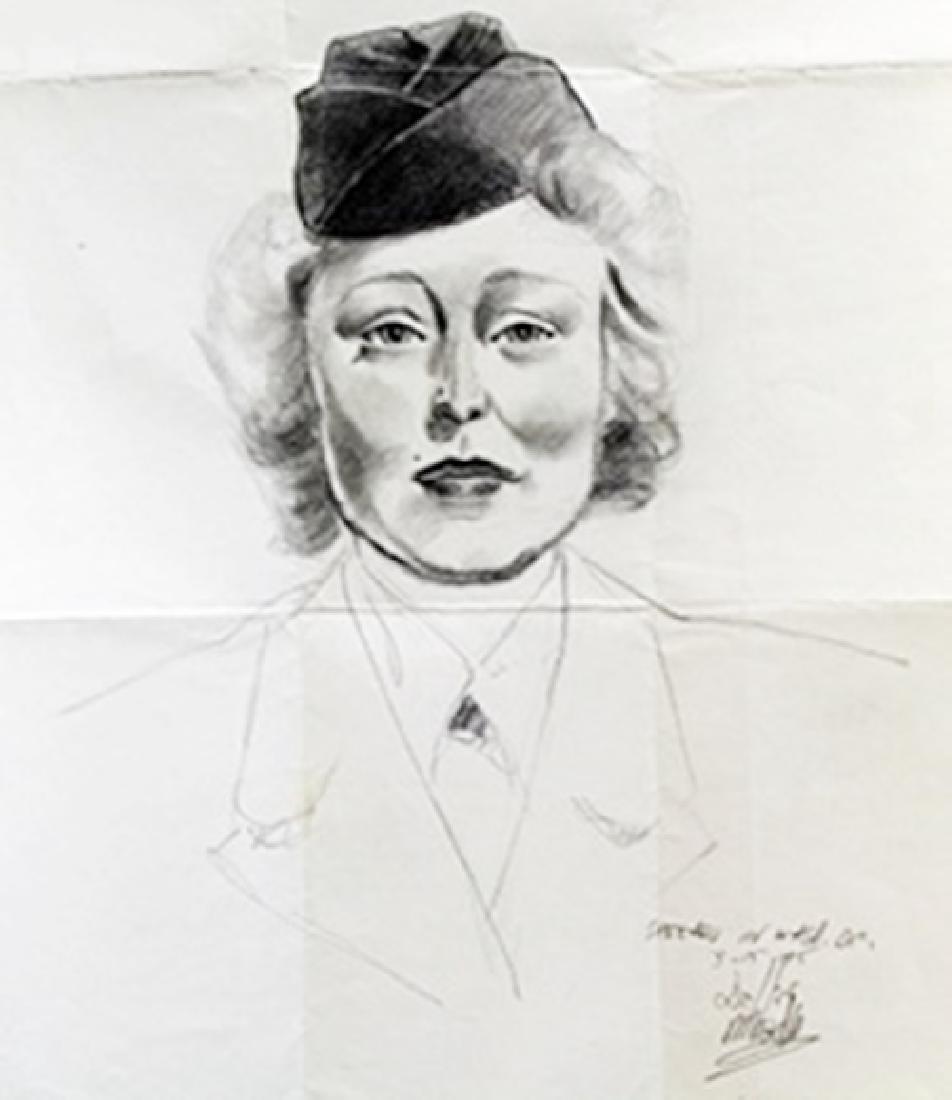 Beautiful Original Pencil Portrait, Dated 3-15-45
