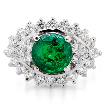 Beautiful Round Emerald & Diamond Ring., 75% BELLOW