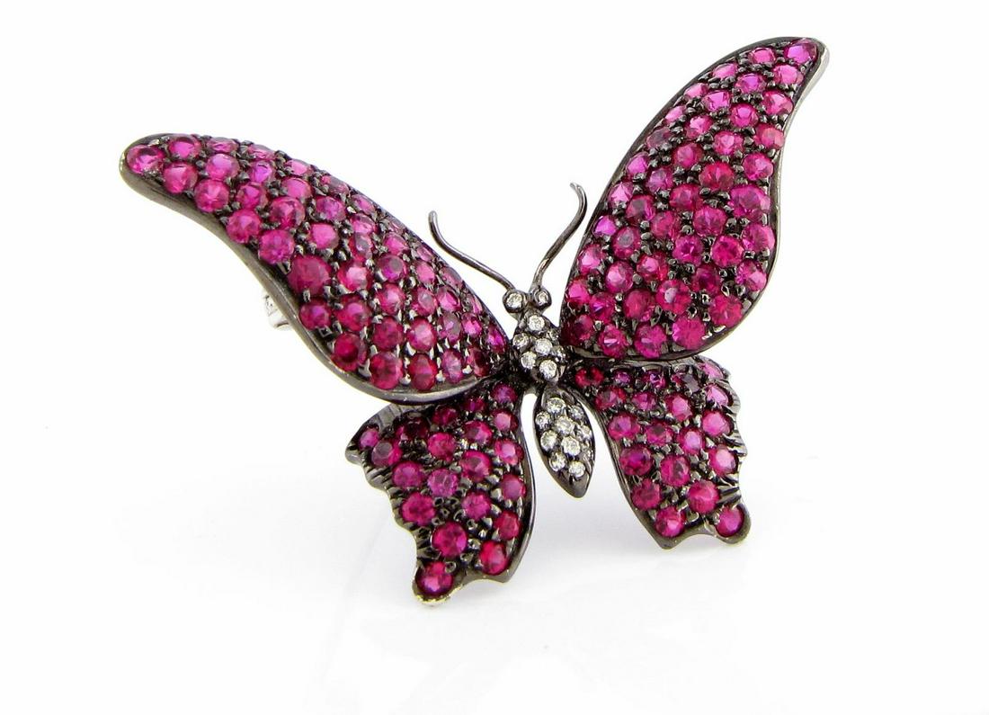 BEAUTIFUL Ruby and Diamond Butterfly Brooch