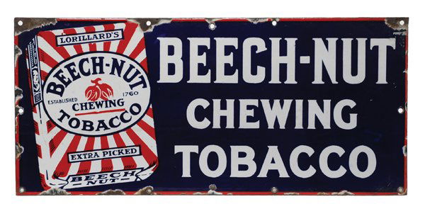 SoldPorcelain Beech-nut Chewing Tobacco advertising signPorcelain Beech-nut Chewing Tobacco advertising sign, 10"T x 22"WSee Sold Price