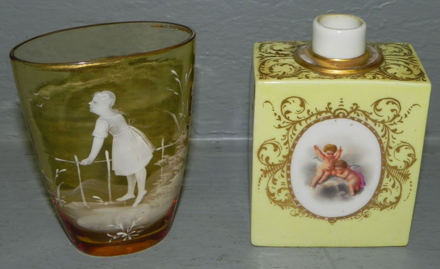 Beehive Snuff Bottle & Mary Gregory Vase.