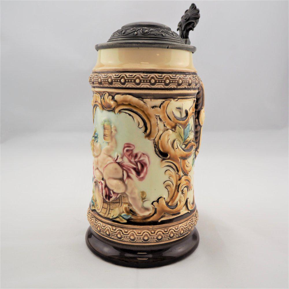 Antique c. 1900 Gertz 1816 German Stein 2L """"Tiroler Leben"""" Pouring Vessel w/ Lid (French Zone)ART 4 AUCTION4.3(4)£100