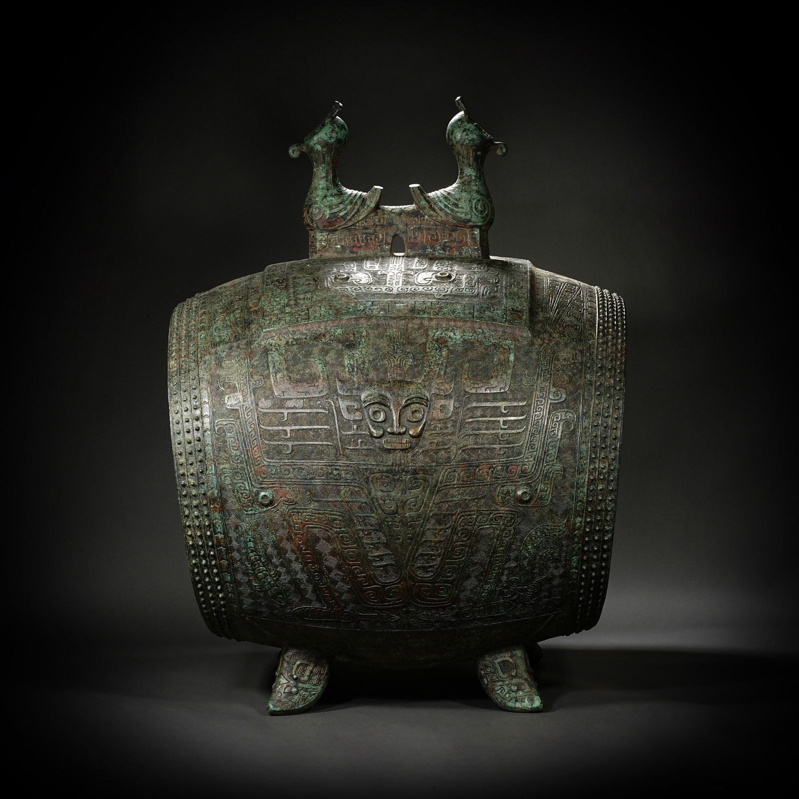 Before Ming Dynasty, bronze Hercules double bird drum