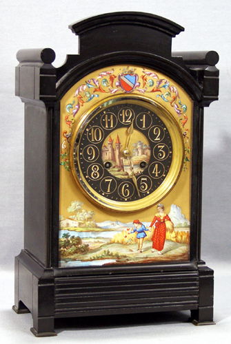 BELGIAN MARBLE & ENAMEL-DECORATED MANTEL CLOCK