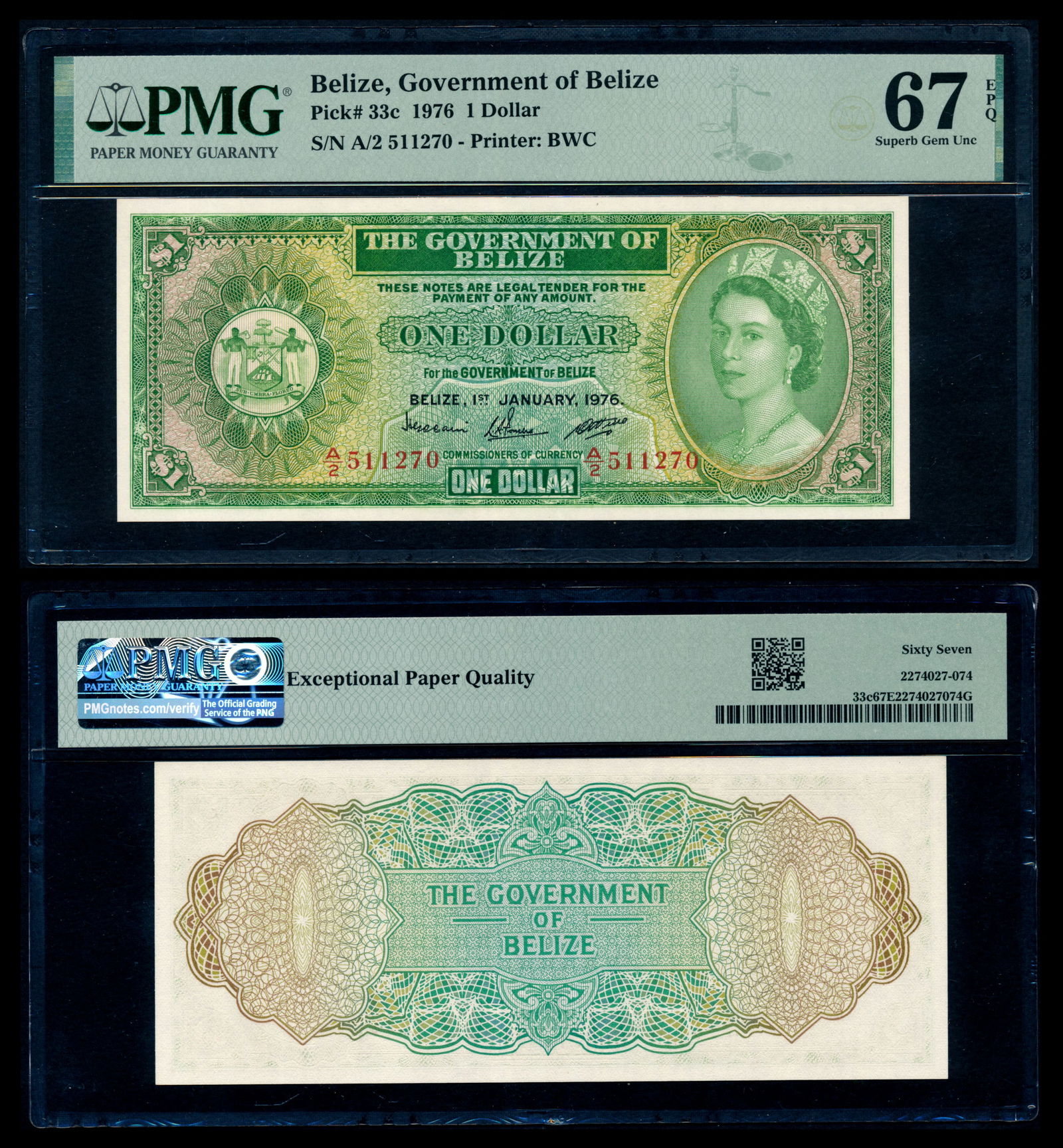 Belize $1 1976 QEII PMG