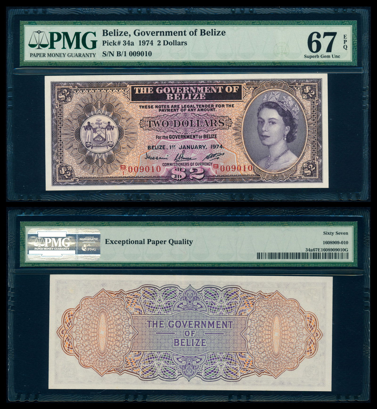 Belize $2 1974 QEII PMG