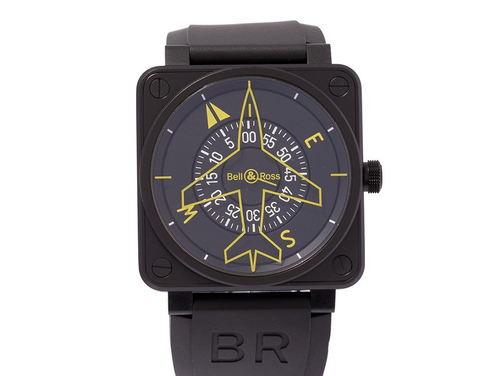 Bell & Ross BR 03-92 Military Type with Date Wristwatch with Bell & Ross Box and Bell & Ross Owner'sStainless Steel Bell & Ross BR 03-92 Military Type with Date Wristwatch on Bell & Ross Strap with Bell & Ross Box and Bell & Ross Owner's Manual; Model BR 03-92, Serial # S-08564. 42mm diameter. Runni