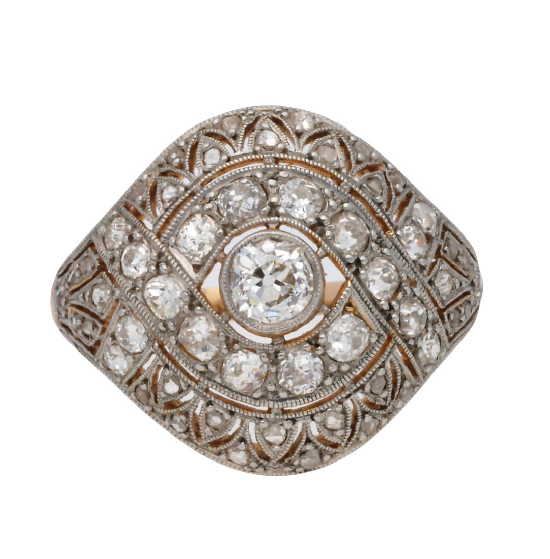 SoldAN ART DECO DIAMOND RING, CIRCA 1920 in platinum, set with an old European cut diamond ofAN ART DECO DIAMOND RING, CIRCA 1920 in platinum, set with an old European cut diamond of approximately 1.10 carats in a fine pierced mount set with single cut diamonds, no assay marks, size J1/2See Sold Price
